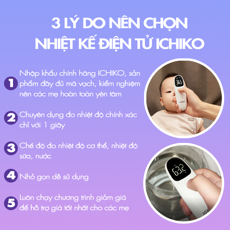 Trong những năm gần đây, việc chăm sóc sức khỏe cho bé yêu ngày càng được các bậc phụ huynh quan tâm kỹ lưỡng hơn bao giờ hết. Đặc biệt, khi bé có dấu hiệu ốm sốt, việc sở hữu một chiếc nhiệt kế điện tử hồng ngoại chất lượng cao, cho kết quả nhanh chóng và chính xác là điều vô cùng cần thiết. Với thiết kế thông minh, ứng dụng công nghệ hiện đại từ Nhật Bản, nhiệt kế điện tử ICHIKO là lựa chọn lý tưởng cho mọi gia đình, đặc biệt là những gia đình có trẻ nhỏ.